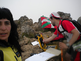 Aizkorrira iristen Marc katalan gaztearekin bat egin dugu. Lo egin barik aurrera darrai, baina bere egoera oso kaskarra da; bi hankak bendajez beterik ditu eta erritmo motela darama. Tipo hau gogorra da benetan. Hala eta guztiz ere ez degu uste Oazurtzako kontrolera garaiz iritsiko denik. Tontorrean Ricardoren berri galdetu dugu, 15 minutura dugula erantzun digute. Ricardok proban jarraitzen du! Guztiz animatu gara, gure idolo berria da. 52 urterekin aurrera! Jeitsiera oso arriskutsua dago; 4 graduko tenperatura egiten duela aipatu digute, baina dagoen haizea eta euriarekin 0 azpitik egiten duela dirudi. Haizeak aurrez aurre jotzen gaitu. Aterpekoek bertara sartzeko gonbita luzatu digute. Guk ezetz, bestela bertan geldituko ginatekeelako. Halako batean, behe laino artean Ricardoren zira urdina antzematen degu. Berarekin Xavi dihoa. Hasierako taldea bukaeran elkartu da. Hau da marka!